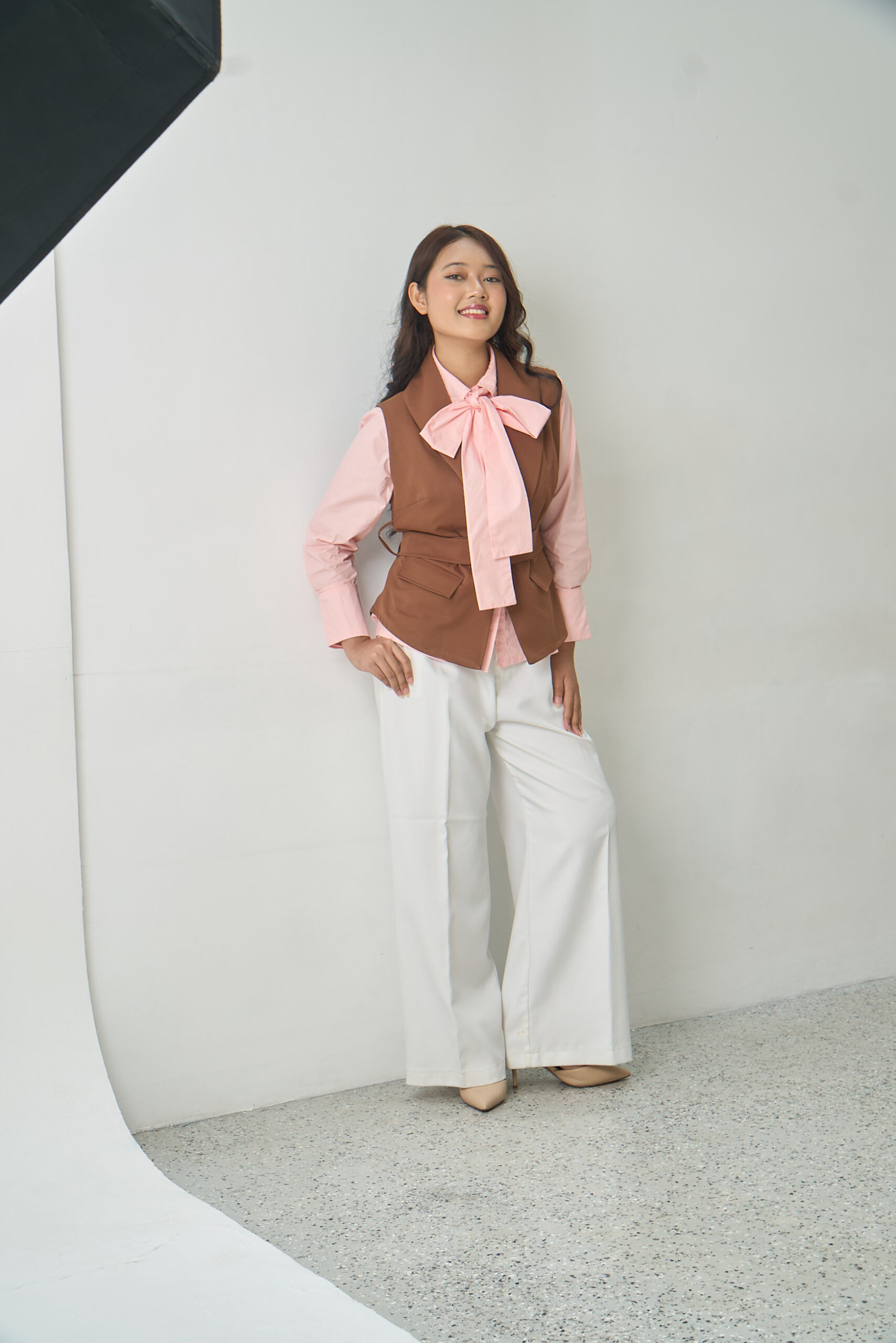 A modern vest crafted from Daisy Wool, offering warmth, lightness, and durability. Designed with a waist belt to highlight the figure, the Aghnia Vest is the perfect layering piece for a stylish yet professional look.