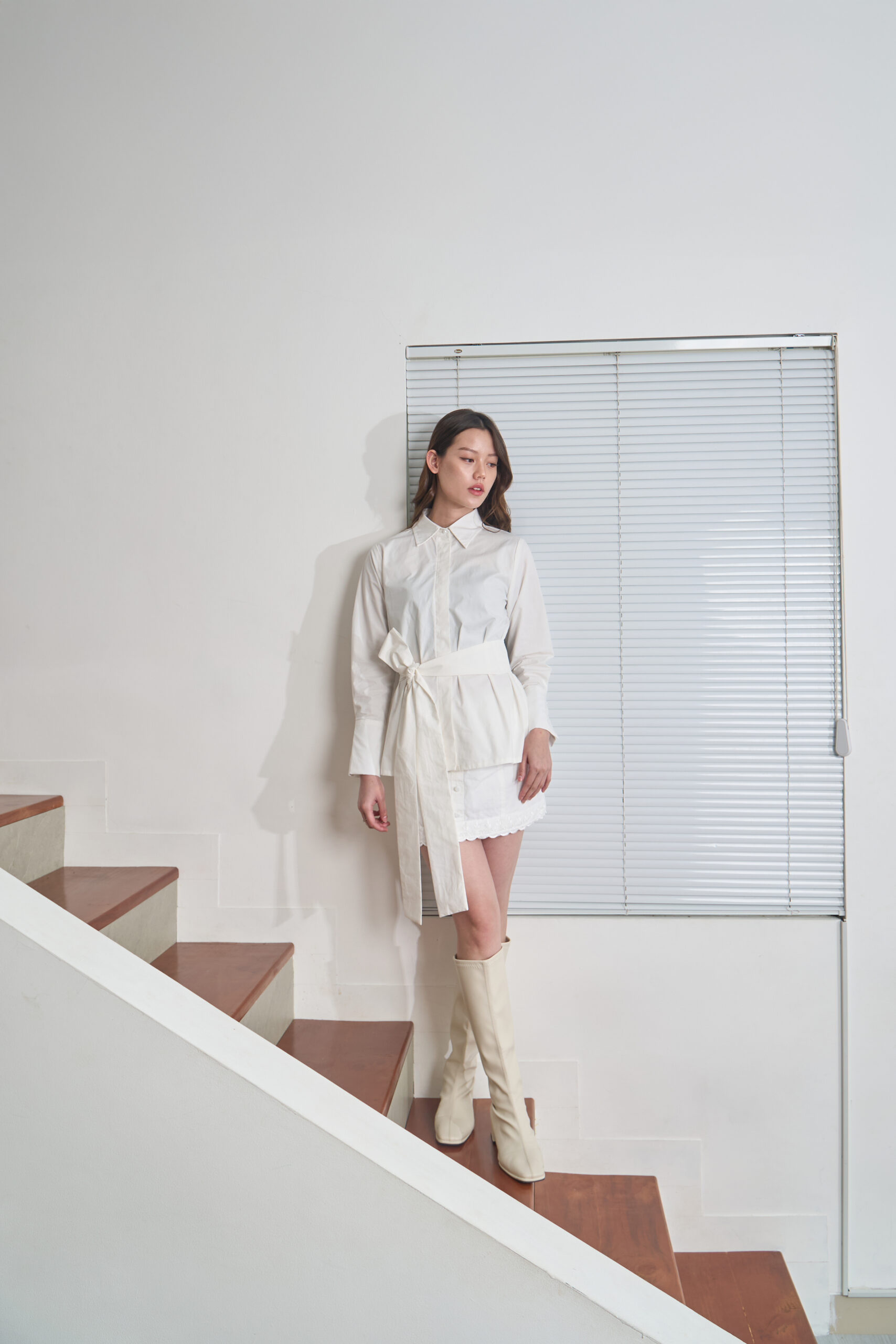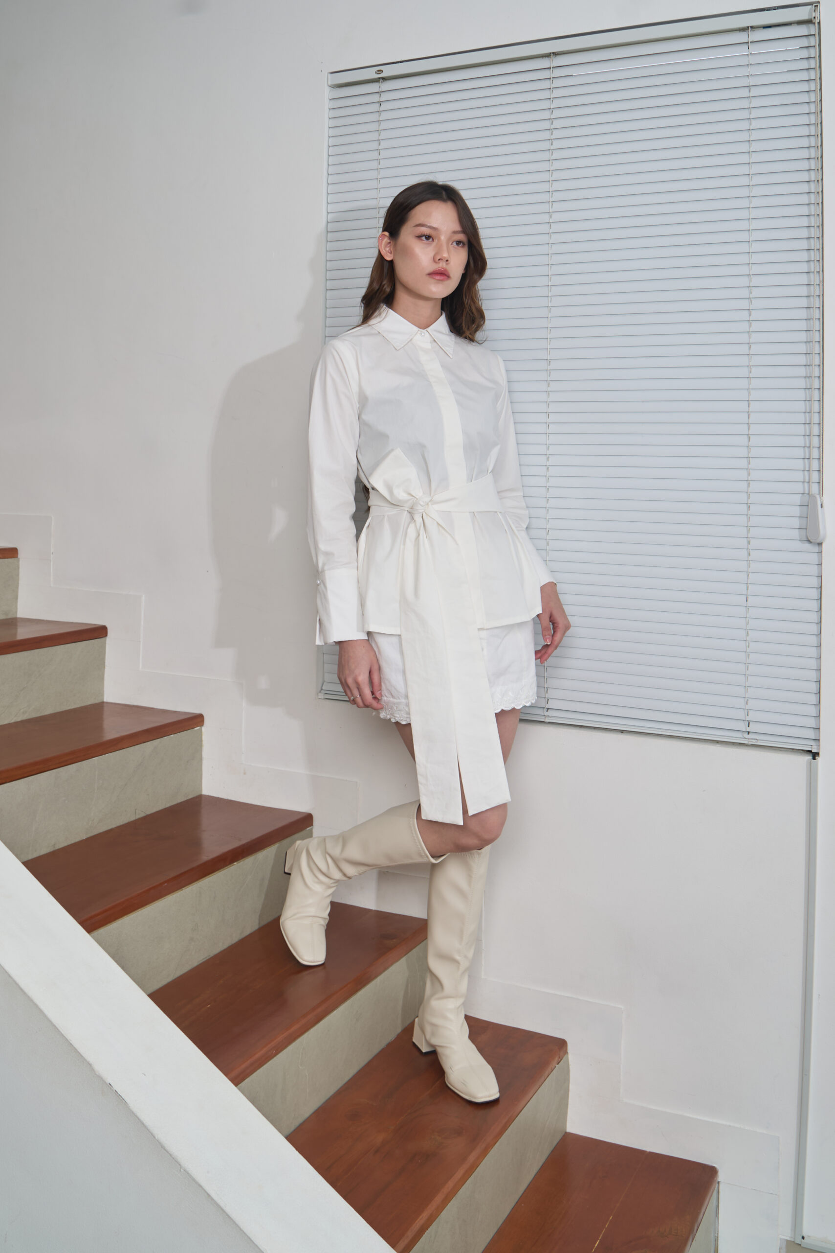 The Alye Top is crafted from Ice Silk Cotton, a smooth, cooling, and comfortable fabric. Featuring a signature front knot detail, it combines femininity with modern sophistication. Presented in a soft blush hue for a classy look.